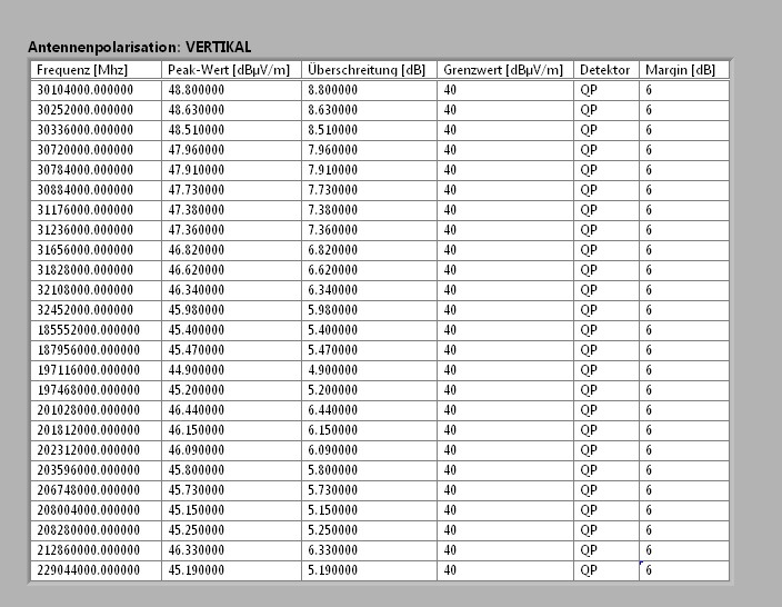 Ergebnis Messwerte als Tabelle darstellen?