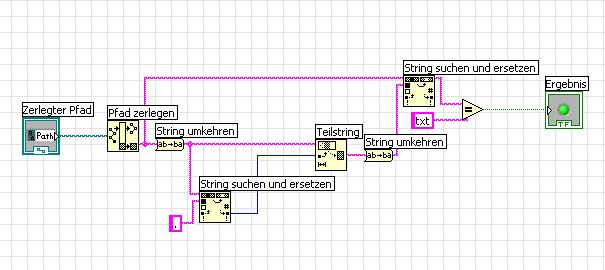 Vermutlich seit LabVIEW8.2 gibt es da ein Funktion unter "File I/O- Advanced- Get File Extension.vi" (das untere im Bild)