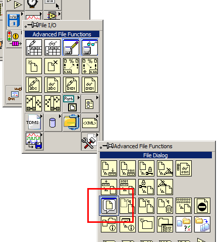 Wenn du programmatisch einen Filedialog aufrufen willst, dann verwende das passende VI: