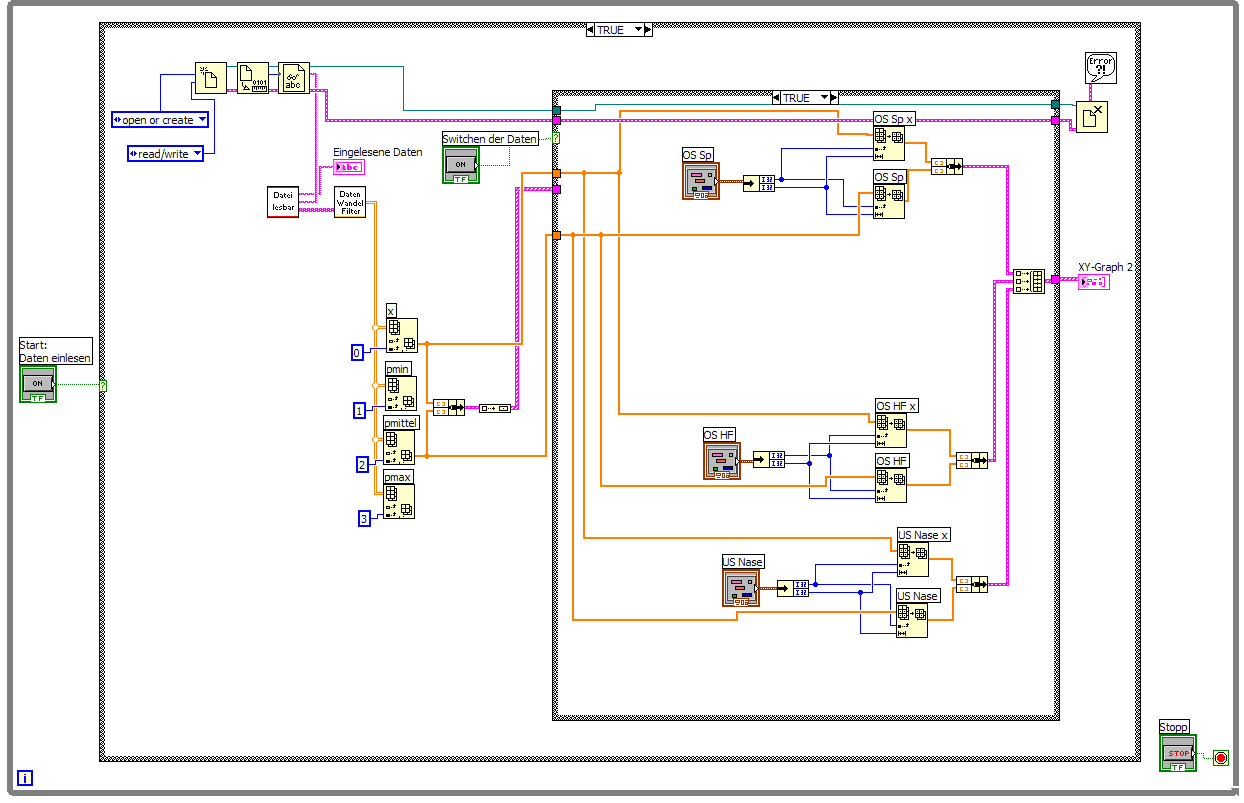 In dem VI ist eine Schleife die läuft bis du Stopp drückst. In der Schleife befindet sich eine Ereignisstruktur, welche folgende Ereignisse behandelt: