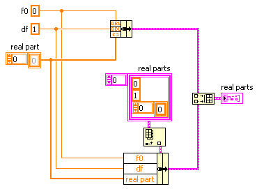 dazu lese ich die spalten aus, berechne über die ersten 2 werte der frequenz f0 und df und aus den signalspalten die amplituden. damit kann ich dann das dateiformat real part erzeugen(also cluster mit f0, df , real part(array)).