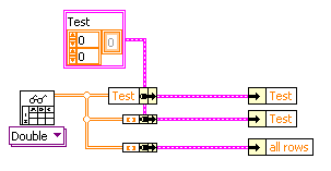 Ich benutze den Ausgang "alle Zeilen (all rows)" des VIs "aus Tabellenkalkulation lesen" und bündle ihn zu einem Cluster. An anderer Stelle wird dieser Cluster mit der Funktion "nach Namen aufschlüsseln" wieder aufgeschlüsselt. Nun steht da allerdings auch nur die Bezeichnung "all rows" als Element des Clusters.
