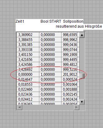 Also beim zweiten Mal klicken auf START geht die Hilfsgröße zunächst mit dem alten Wert vom ersten "Klick START" (irgenmdwas um 1000) ein und springt im Rahmen 2 somit erst in die letzte Berechnungsvorschrift (Hilfsposition > S_Beschleunigung+S_Constant) und wirft somit einen falschen Wert aus.