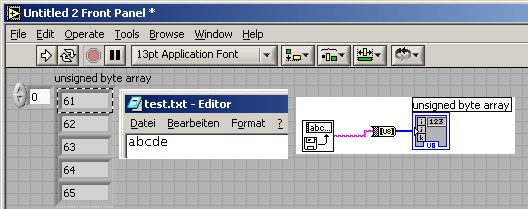Ich hab jetzt ein Programm geschrieben, dass funkioniert, aber bei größeren Datein (von ASCII Zeichen) hängt sich der Computer fast auf und das Lab View ladet die ganze Zeit und bringt nichts raus.