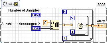 Mit zwei Forschleifen habe ich am Anfang auch probiert. Nur liefert mir das Picoscope schon von Anfang an ein 1D Array mit der Länge "Number of Samples" und wenn der Buffer voll ist, dann liefert es wieder 1D Array usw. Dieses 1D Array will ich nun stapeln und am Ende bekomme ich ein 2D Array mit der Länge "Number of Samples" und Breite Anzahl der Messwerte. Eigentlich ist das Problem ganz einfach und das FN macht genau das was ich will. Nur die Laufzeiten sind bei den größeren Arrays zu langsam.