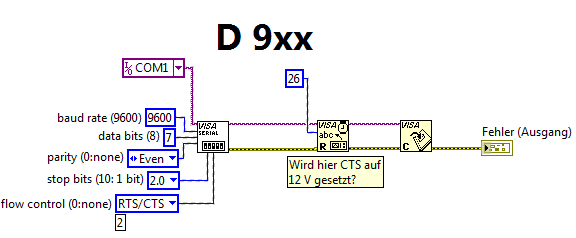 Edit: Ist es so, dass CTS erst dann auf 12 V gesetzt wird, wenn ich "VISA Read" aufrufe? Vorausgesetzt natürlich, als Flusskontrolle ist CTS/RTS konfiguriert.