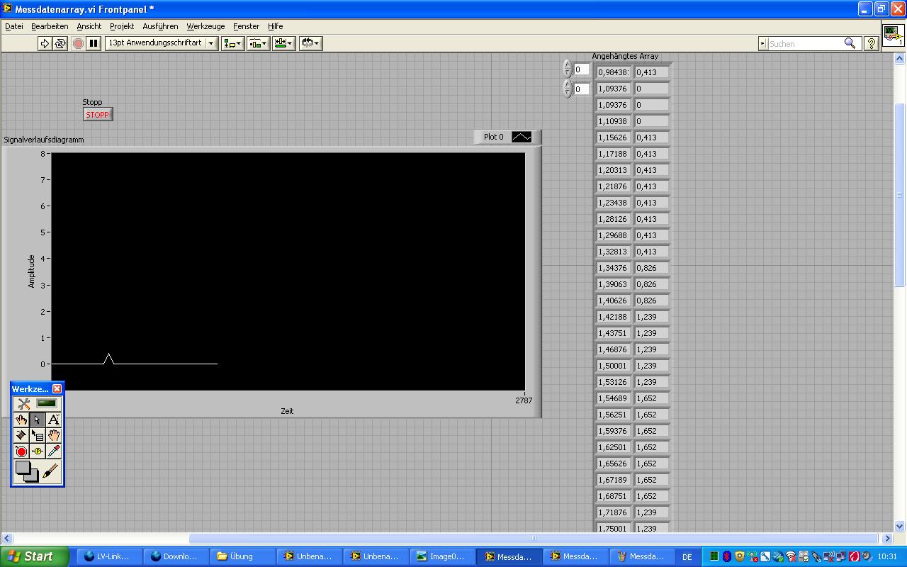 Mh offe ich versteh das richtig und du meinst die Messbox mit der Hardware das ist eine DT9800 BNC worüber ich das analoge Signal per USB in den Rechner einspeichse. Und in unserem hauseigenen Messprogramm gekommen ich auch Kurven ausgegeben..