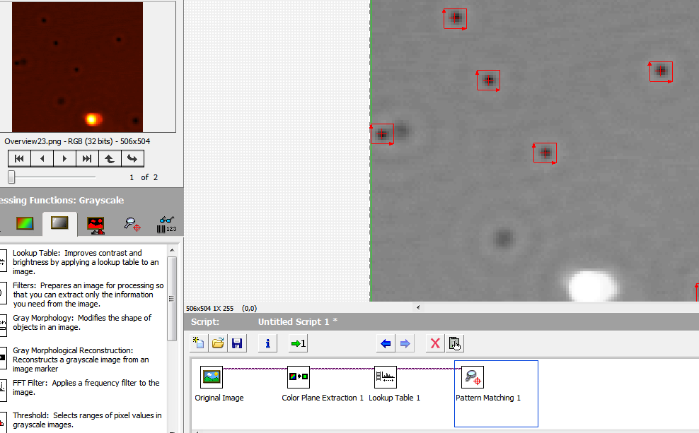 Für die sxm-whatever-Daten brauchst du dann nur noch Größe des Gesamtbilds und die des IMAQ-Bilds. Daraus gibt sich der Skalierfaktor für die Koordinaten, die dir das Patternmatching liefert.