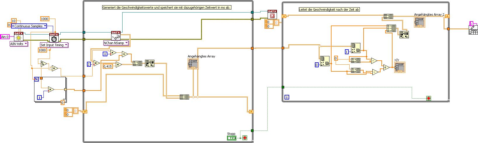 dann sollte ich den Index der Zeilen deaktiviert lassen d.h. keine Konstante anfügen und bei der Spalte meine dazugehörige Spalte. So ist zumindst es in meinen Testprogrammen gewesen. Doch leider hab ich dann immernoch das Problem das MeanPtbyPt eigentlich ein Teilarray übergebe womit das Vi nicht arbeiten kann. wenn ich nun es wieder indiziere um die einzelnen numerischen Werte der einzelnen Zeilen heraus zulesen kann ich leider nicht wie vorher bei dem Teilarray den Index deaktivieren in dem ich einfach keine Variable dran setze und wenn ich den Index an meine Schleifenvariable hänge funktioniert es leider auch nicht.Vielleicht ist das Vi MeanPtByPt auch der falsche Weg, und ich solte mich einfach mal mit einem anderen Filter beschäftigen der mit meine Funktion glätten kann.