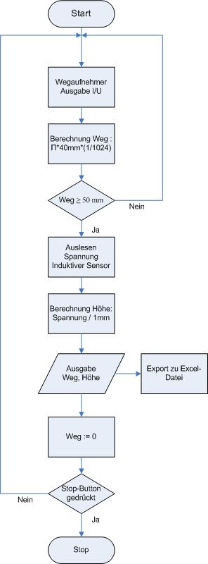 Das programm sollte so lange den Weg aufnehmen dieser >= 50mm ist, wenn das geschehen ist soll der induktive Sensor einen Abstand messen. Möchte das so oft wiederholen bis ich z.b. Stopp drücke.