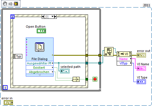 Man nutzt einfach die Ausgänge des FileDialogs.