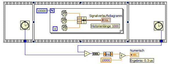 Das war ja auch zu erwarten: Der graphische Teil das Updatings wird von der Messung in diesem VI überhaupt nicht erfasst. Das ist ein anderer Thread mit niedrigerer Priorität als das Einlesen der Daten in den Speicher der Graphik.