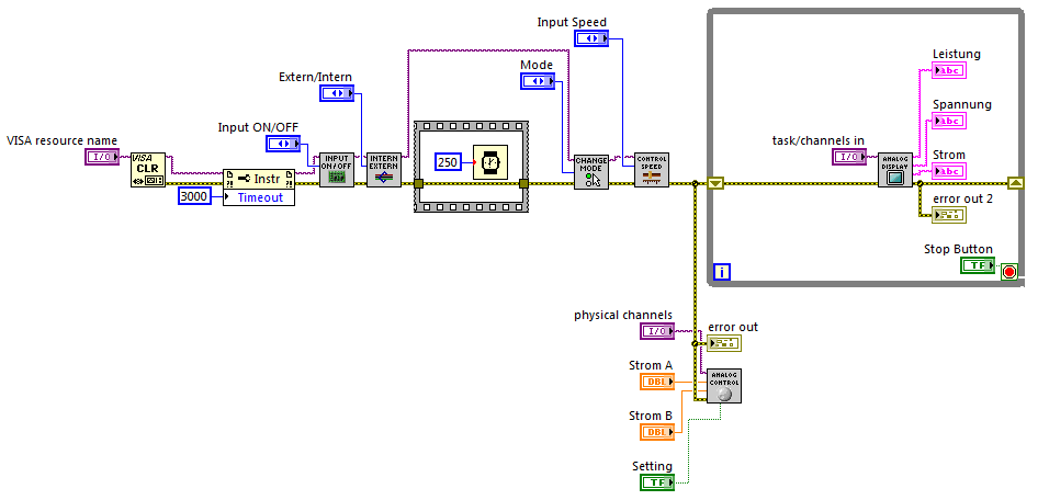 P.S.: Wenn "die Knöpfe zum Einstellen des Strom" sichtbar sein sollen, wäre es keine schlechte Idee, das subVI entsprechend zu konfigurieren: das macht man über die "VI Properties"...