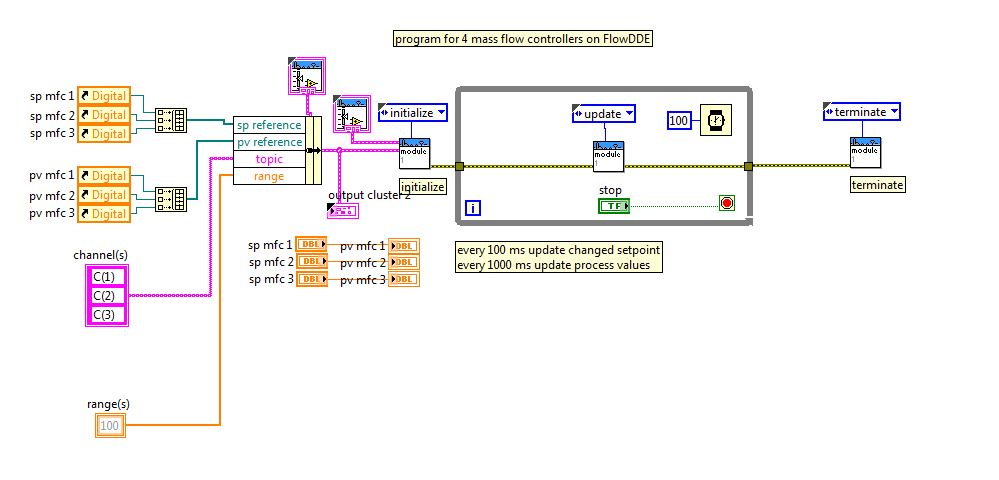 die Faktoren habe ich allerdings weiss ich nicht ob ich die einsetzen muss, denn die MFC`sind alle schon vorkalibriert. Ich habe so wie im Bild dargestellt ganz primitiv die Ausgang von setpoint zum Eingang von Pv gebunden. Dann klappt es. Aber ich denke MFC macht da nichts. Auf dem FP wird nur der Wert überschreiben. Sollte ich dann mit den Faktoren für den jeweiligen MFC rechnen und dann über diese Rechnung die Sp mit pv verbinden?