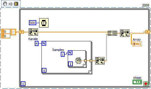 das hier funktioniert bei mir prima, um Messwerte mehrerer Kanäle in einem 2D-Array zu sammeln: