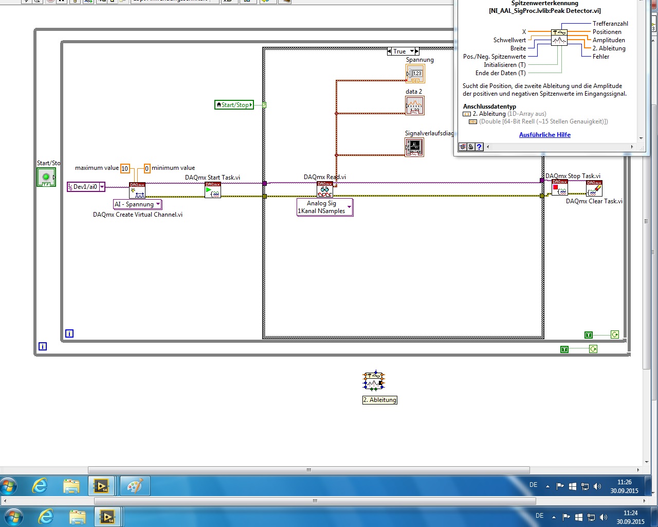 So nun habe ich heraus bekommen, dass man mit dem VI "Peak Detector" die Periodendauer aufnehmen kann. Jedoch ist mir noch nicht ganz klar welche Verbindungen noch in meinem VI zur Verdrahtung mit dem "Peak Detector" fehlen? (siehe Bildanhang)