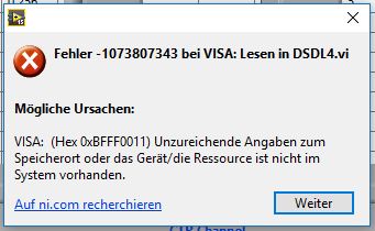 Beiträge in Foren weisen darauf hin, dass es an einer fehlerhaften/doppelten Installation des NI-VISA-Software liegen könnte. Dies sieht bei mir MAX jedoch ok aus, denke ich.