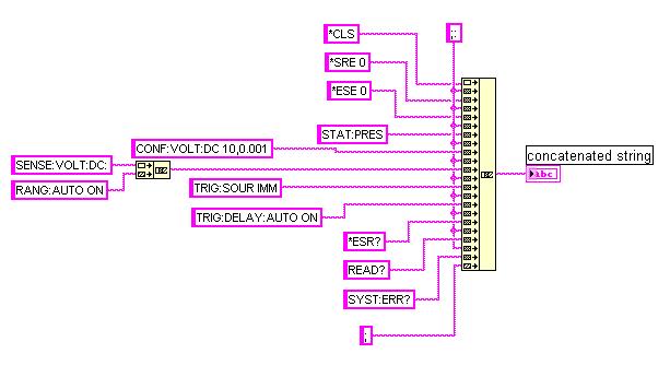 Da habe ich Dir ein Bsp. für eine Gleichspannungsmessung gemacht. In der Realität habe ich da dann auch noch Widerstandsmessungen und AC-Messungen dabei, deren Befehle ich je nach Auswahl (per Cases) erzeuge.