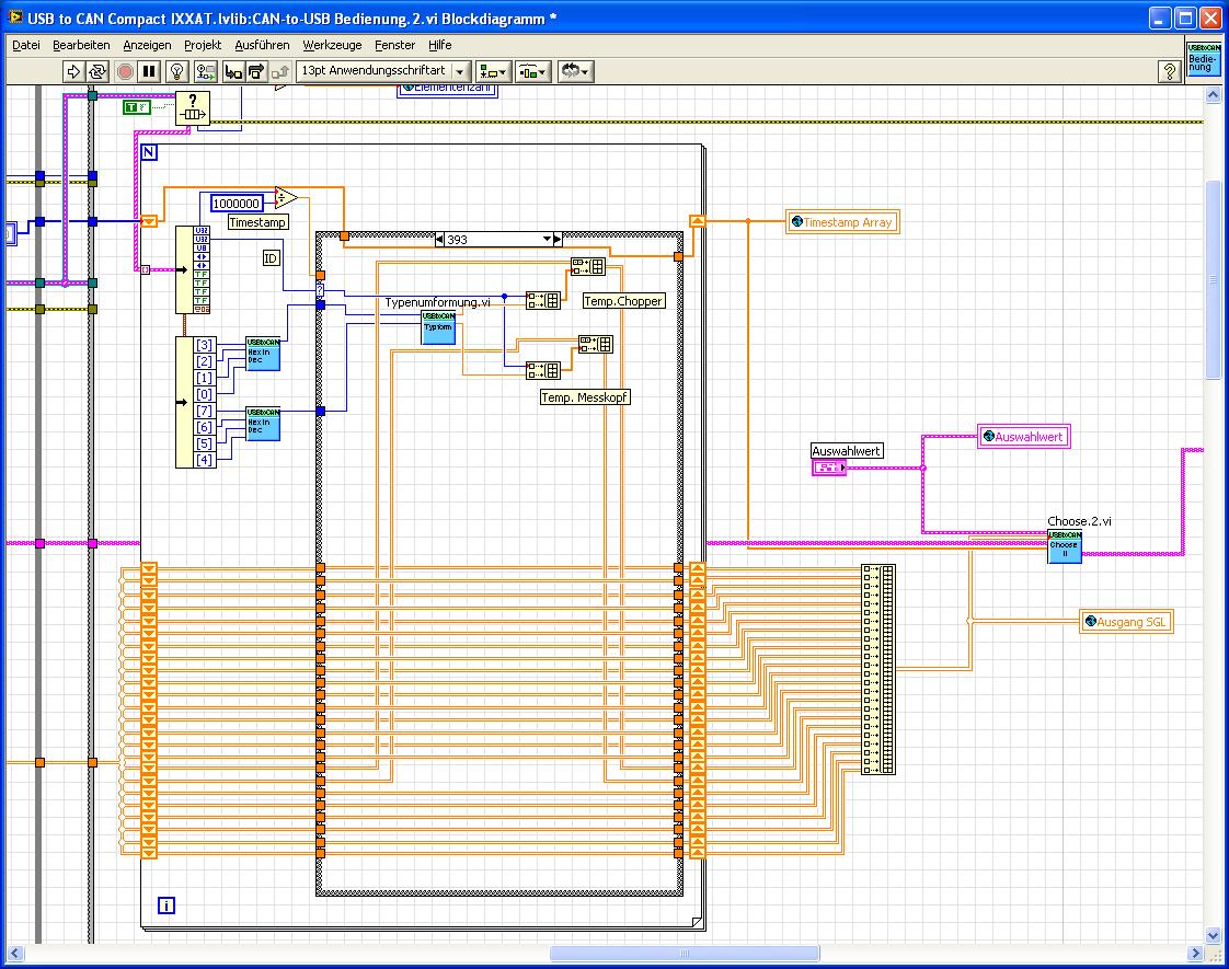 Wie ihr seht, habe ich bei der Auswahl im Frontpanel einen "Auswahl"-Kasten eingebaut. Dieser wird dann durch eine for-Schleife abgefragt und mit Hilfe von der Case-Struktur werden die Werte sortiert.