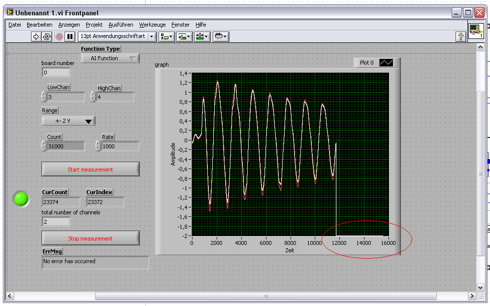 1. Wenn ich im "continuos mode" die analogen Kanäle erfaße und die Messung