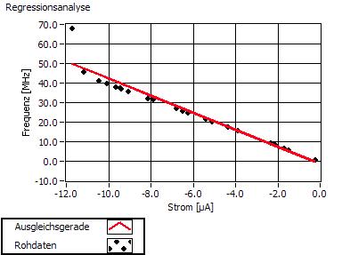 Eins im Inneren der Schleifenstruktur welches mit Punkt für Punkt die aktuelle Kurve anzeigt und eins ausserhalb welches erst am Ende der Messung das Array darstellt und über einen zweiten Plot die Ausgleichsgerade ebenso.