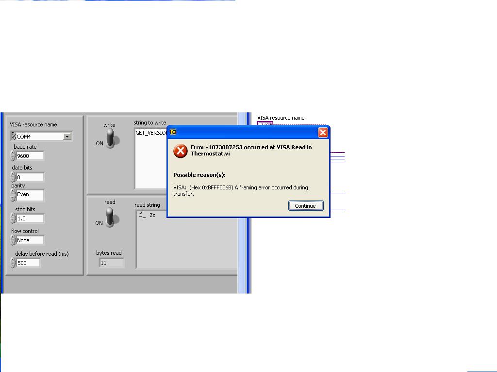 ' schrieb:Also wenn ich was über das LV Beispiel "Serial write and read.vi" sende,dann kommt auch was zurück,nur irgendwelche komische Zeichen und mehr passiert nicht!