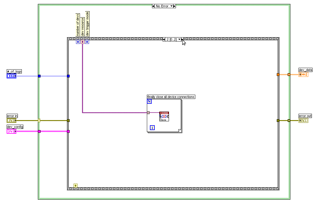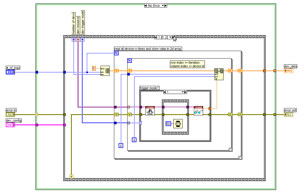 Das problem ist, dass das ein Studentischer Versuch wird und ich denen nicht mehr als diese SubVI geben will. Dafür will ich einfach diesen Messtaster nach aussen ein das MainVI einbinden so, dass die Studenten via eines Button die Messung durchführen können.