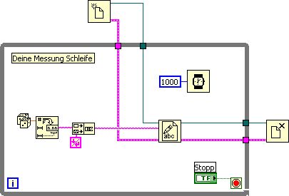 Problem ist folgendes. Dieses Vi "Write Characters to File" SubVi öffnet und schließt bei jedem Aufruf die Datei in die du schreibst. Das ist ja ansich sehr gut, braucht aber viel Zeit. Wenn du nun jede Sekunde Messwerte schreibst müsstest du erst ausprobieren, ob das Vi dann auch schnell genug ist.