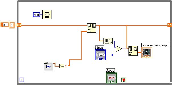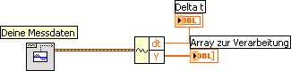 Im Endeffekt musst du dir das so vorstellen das bisher von einem Baustein (falls du ni-scope hast ist es der niScopeMultiFetchWDT.vi) ein 1D Array wfm direkt zum Graphen ging, alles befindet sich in einer while-schleife. insgesamt werden 50000 werte von einem digitizer mit einer SampleRate von 10MHz aufgenommen (so viel zu den Randbedingungen). ich hab die Größe des 1D-wfm-Array mir mit dem Baustein Array Size anzeigen lassen und da stand konstant ne 1 drin -> Arraygröße = 1. Das heißt doch dass nacheinander die 50000 Werte zum Graphen geschoben werden, oder? und ich weiß halt nich wie ich da noch nen array zwischen bauen soll....