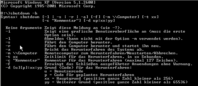 (14.11.2011 08:00 )SeBa schrieb:  "shutdown -f -p" ist kein gültiger Aufruf, da die Option -p gar nicht existiert.