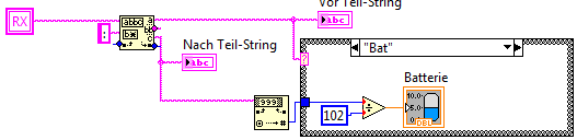Alles innerhalb einer Zeile vor dem ":" kommt in die Case-Abfrage, alles nach dem ":" wird als Messwert interpretiert. Im Beispiel hier ists der Batteriemesswert ("Bat"), welcher zur Verrechnung in Volt noch durch 102 geteilt werden muss. Also alles recht einfach.