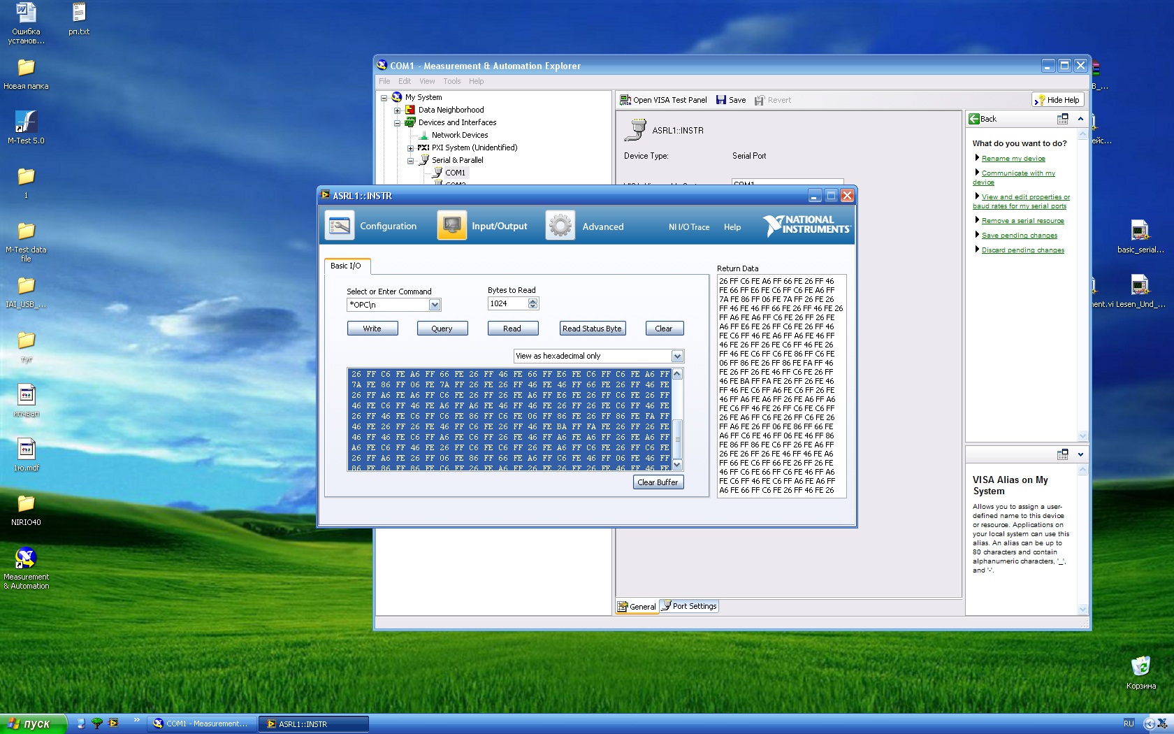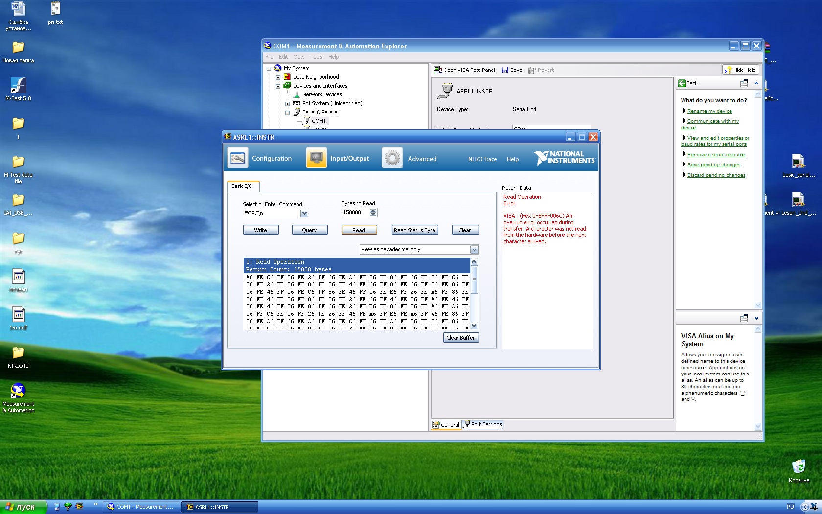 Habe jetzt mal die Daten aufgenommen, die in LabVIEW ankommen. Doch irgendwie kann ich damit nicht recht viel anfangen :/. Habe auch mal die Leitung mit einem RS-232 Sniffer abgehört und irgendwie standen da nur solche russischen zeichen Huh . Habe auch mal mit dem VISA Test Panel rumgespielt doch auch damit kann ich noch wenig anfangen .. Und es tritt immer ein Fehler auf den VISA mir ausgibt, dass ein Überlauf Fehler auftritt.. wie kann man den denn beheben? Im Anhang habe ich mal die Screenshots von den Daten gepackt. Ich hoffe ihr könnt mir helfen.