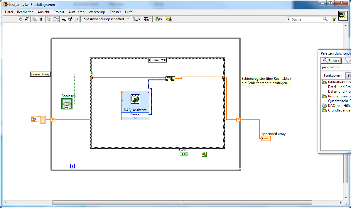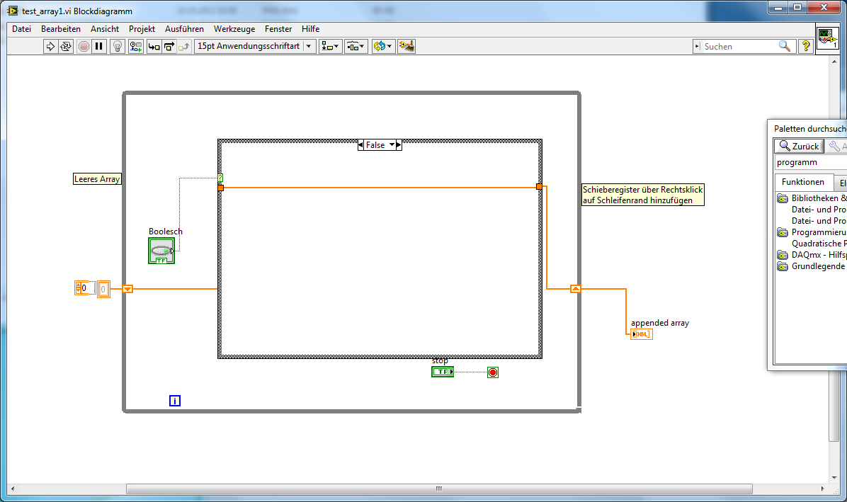 Hast du schon mal den Grundlagenkurs von NI mitgemacht? (Siehe Link in meiner Signatur!) Da wird der Umgang mit Schieberegistern etc. erläutert...