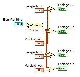 • Ist es sinnvoll anstelle von Referenzen den vorhandenen Ring-Terminal an das SubVI zu übergeben? Im Moment habe ich zur Endlagenbestimmung die Referenz der Kiste an meine SubVIs übergeben und lese daraus die Position aus. Wenn ja, wie würde ich im SubVI die Position abgreifen?