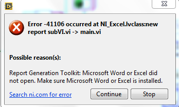 Zudem habe ich das Problem, dass ich ständig die Fehlermeldung 41106 auftaucht (siehe Anhang). Ich besitze jedoch eine Excel Lizens und es ist auch richtig installiert. Den „Trick“, dass man ein Delay einbaut habe ich bereits ausprobiert. Es wird dadurch besser aber des Öfteren wird die Fehlermeldung trotzdem ausgegeben.