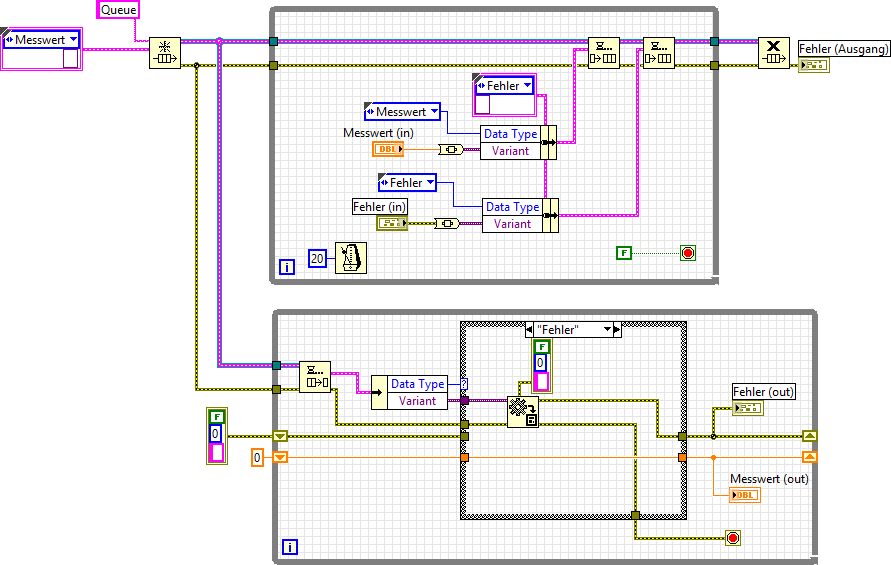 Ich habe es jetzt mal für meine Bedürfnisse etwas angepasst, aber ich bekomme dennoch nicht beide Datentypen (Messwer und Fehler) zusammen in die zweite Schleife und wenn ich es oben hin bekomme dann habe ich unten noch immer das Problem das wenn die Case Struktur umschaltet eines der Ergebnisse auf einen Wert gesetzt wird den ich angeben muss oder mit "Standard verwenden, wenn nicht verwendet" belegen muss.