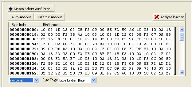 Wie kann man aus den übertragenen Binär- Daten in der Datei (Anhang) den übertragenen Kraftwert analysieren?