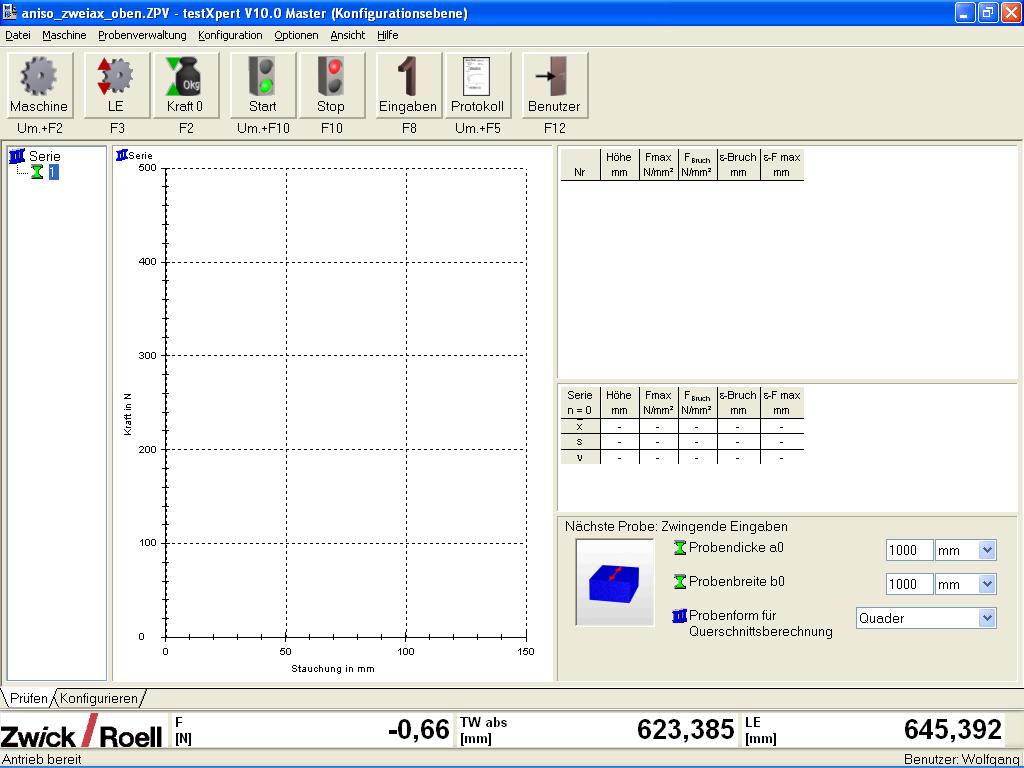 Eine Parallele Ausgabe der auf der Zwick angezeigten Kraft-Werte versuche ich noch zu erstellen.