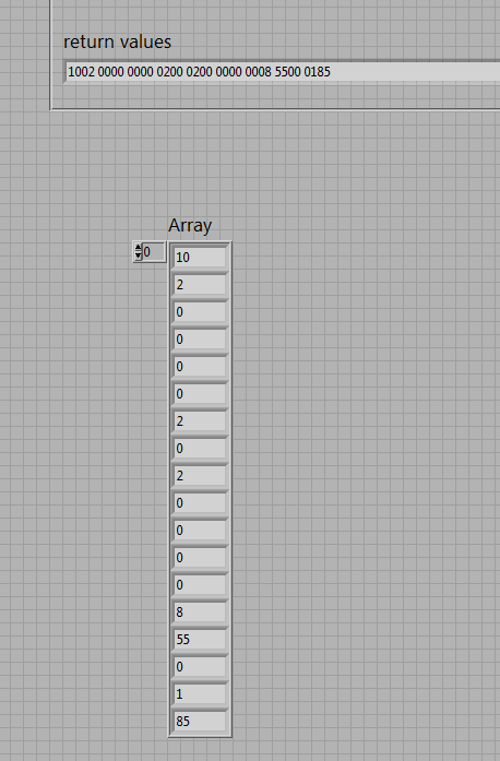 Dies geschieht im Haupt VI. (Im Anzeigefenster Return Values wird dies auch richtig angezeigt, Modus: Hex)