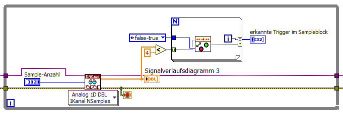 Man merkt sich einfach, wann der erste Trigger entdeckt wurde. Der Schleifeniterator bietet sich an, alternativ kannst du auch einen "globalen" Index für deine Samples mitzählen, den du bei jedem DAQmxRead um die Anzahl der gelesenen Samples erhöhst…