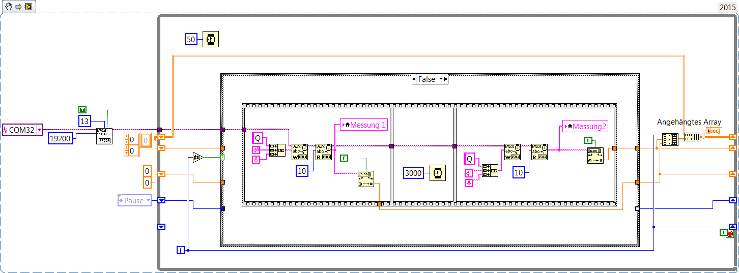 Gemäss Waagenanleitung ist dafür ein "R" fürs Nullen und ein "Q" fürs Messen nötig. Im Hyperterminal funktioniert es. Im Labview erhalte ich Timeoutfehler.