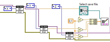 In der Zwischenzeit habe ich mich dazu entschieden, dass bei Bedarf auch die z-Achse abgescannt werden kann. Das läuft jetzt in drei For-Schleifen so, dass für jeden Z-Step die XY-Ebene gescannt wird, dann fährt der Motor zu X=0 und Y=0 und die z-Schleife beginnt von vorn. Das Scannen der z-Achse muss ich nicht zwingend implementieren, allerdings ist das als Bonus gern gesehen :-) Und als ich die Struktur des Scan-Vorgangs geändert habe, war die z-Achse dann nur noch eine For-Loop mehr. Man kann sich jedoch mittels eines Boolschen Bedienelements auf dem Frontpanel aussuchen, ob man auch Z scannen möchte.