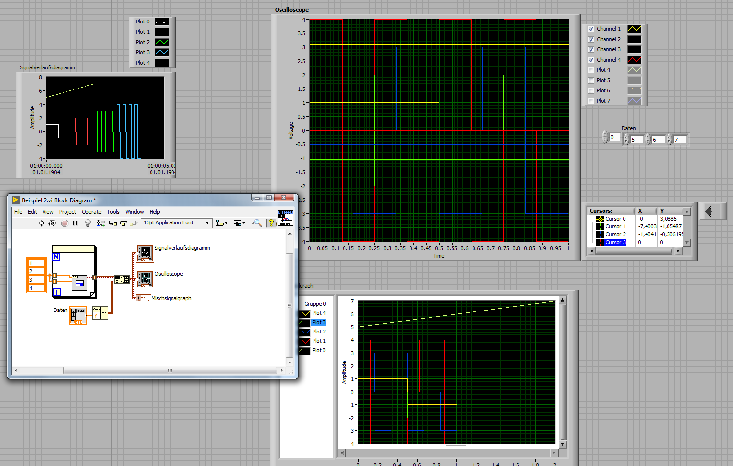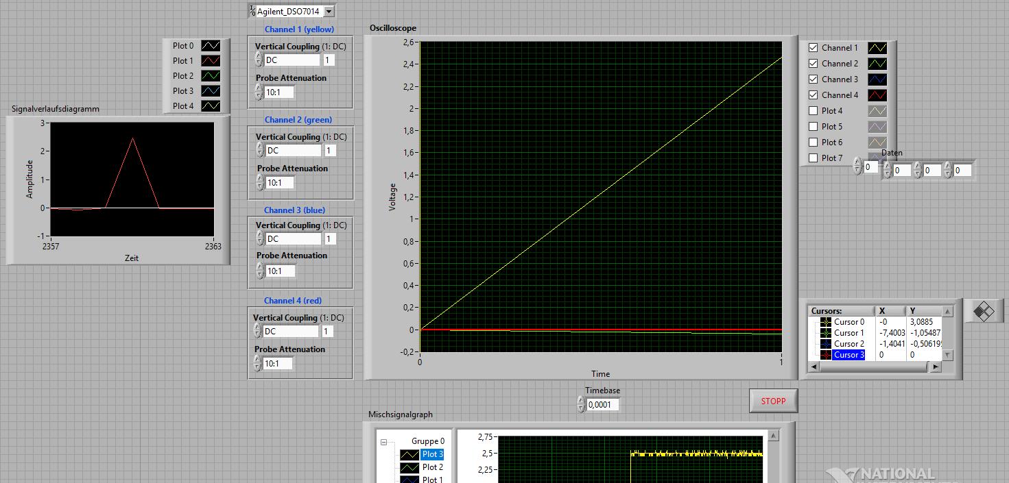 Am liebsten wäre mir wenn man das Ozilloskop in einem Signalverlaufsdiagramm wiedergeben könnte weil die anderen Messwerte später in Echtzeit gemesen werden mit einem anderen Programm und diese Werte werden nur auf einem Signalverlaufsdiagramm dargestellt da diese Zeitbezogen sind.
