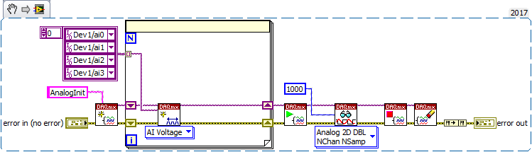 Du hast IMMER NOCH die Race condition aufgrund unnötiger lokaler Variablen in deinem VI: der AI-Task wird sehr wahrscheinlich nicht (korrekt) gelöscht! Und beim nächsten Start des VIs gibt es eben Fehlermeldungen…