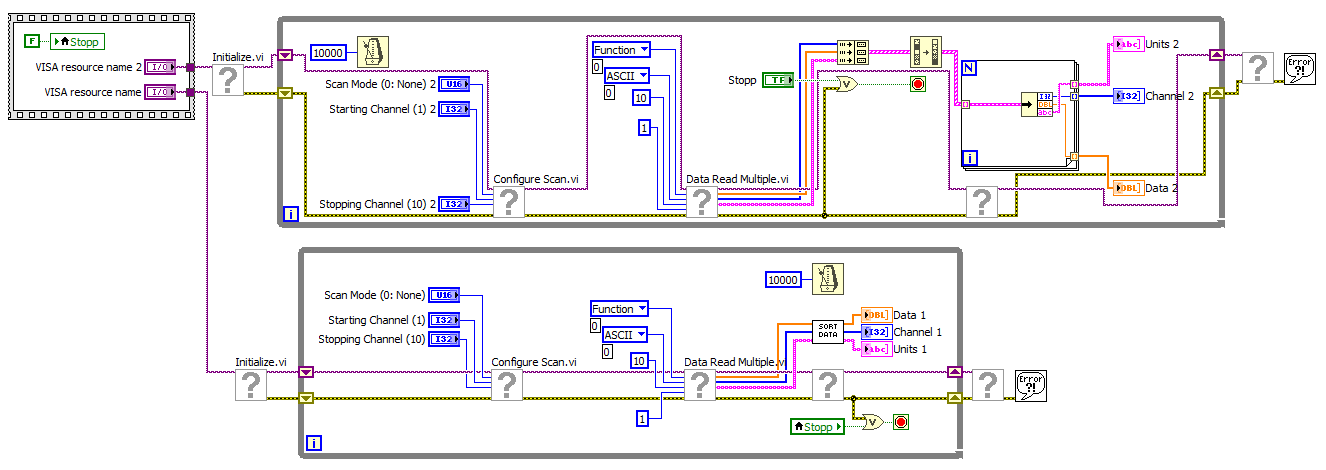 ja mit einem Stopp Button wäre deutlich schöner. Aber in deinem Programm kann ich doch dann nur ein Keithley2000 ansteuern. Kann ja nur einmal den "Visa resource name" auswählen oder?