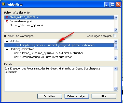 danke für Deine Mühe. Den zweiten Fehler im Datenerfassung.vi habe ich behoben. Das ist beim Kopieren passiert. Daran lag es aber nicht.