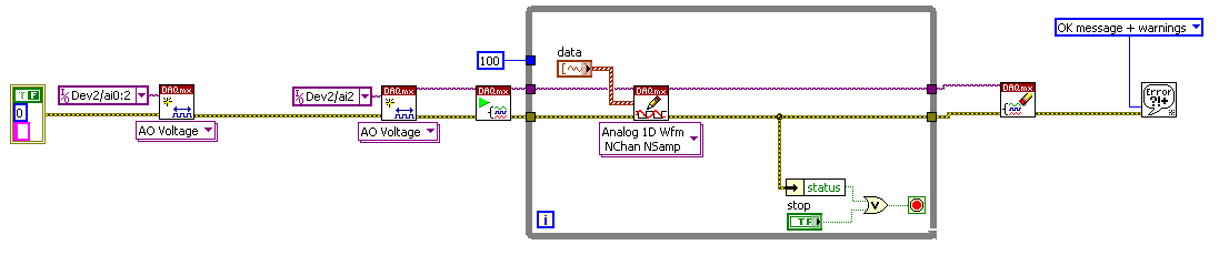 Also wenn Du mehrere analoge Kanäle ( Ausgänge oder Eingänge ) per DAQmx ansteuern willst, dann solltest Du das so wie da machen: