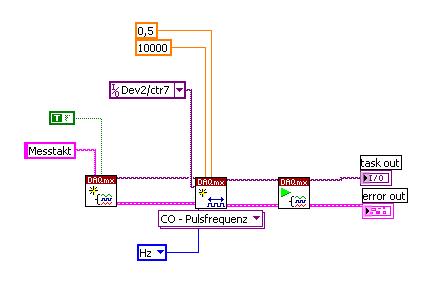 2) ich erstelle den Task der den Messtakt erzeugt. Ist es egal ob ich mit dem VI CO - eine Frequenz ausgebe oder Pulsdauer?