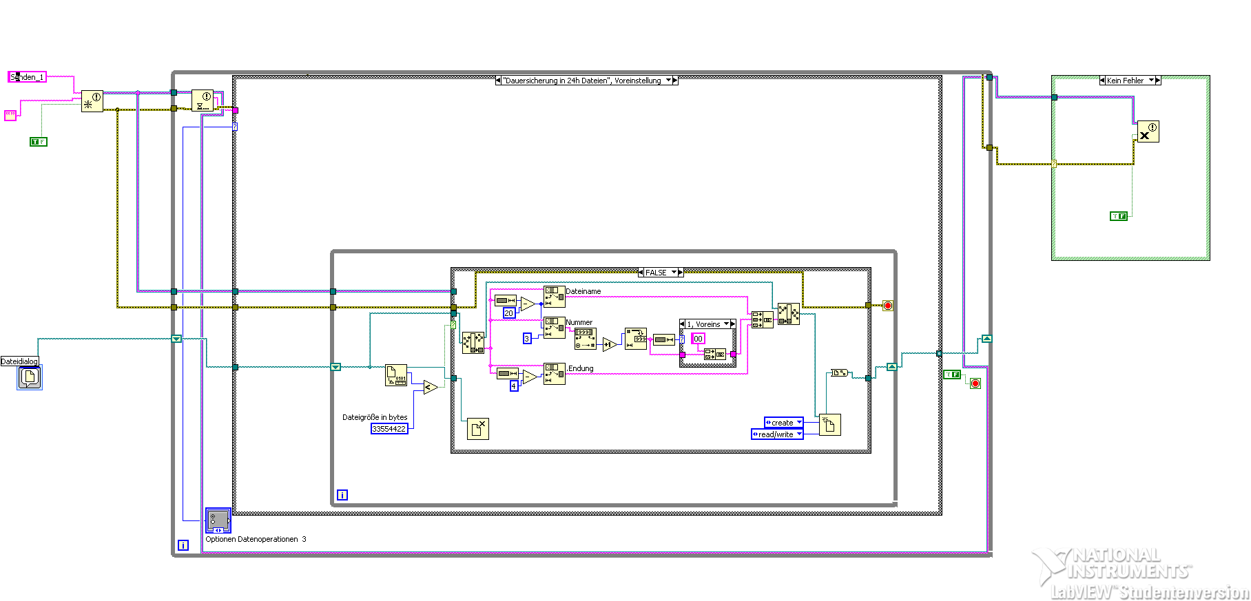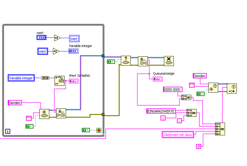 Einmal direkt ein True am Stop angeschlossen, die While-Schleife läuft also nur 1x (das mag bei einem FGV seine Berechtigung haben, aber in deinem Screenshot erkenne ich die nicht).