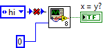 ' schrieb:Coercion Dots gibt's wenn Du z.B. eine U32-Konstante an einen I16-Indicator anschließt, genauso ist es wenn Du z.B. an eine "Geteilt"-Funktion eine Integerzahl anschließt. Da werden immer Double verlangt. Wenn Du eine Integerzahl anschließt, wird es intern umgerechnet. Der Hinweis dafür ist eben ein Coercion Dot (kleines rotes Dreieckchen oder "Punkt").